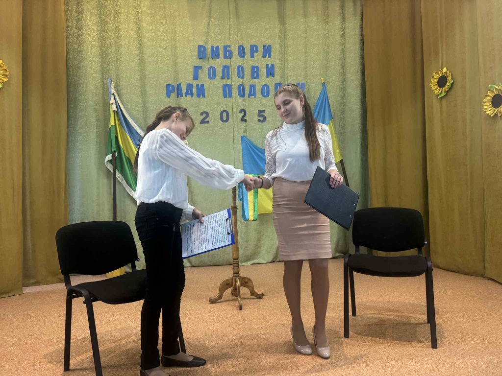 Участь у виборах брали Давидюк Марія, учениця 7 класу, та дев’ятикласниця Диченко Богдана. Кандидатки представили свої програми, поділилися планами та мріями щодо розвитку учнівського самоврядування . Голосування пройшло чесно, прозоро та демократично. Із невеликим відривом голосів перемогу у чесній боротьбі виборола Диченко Богдана.