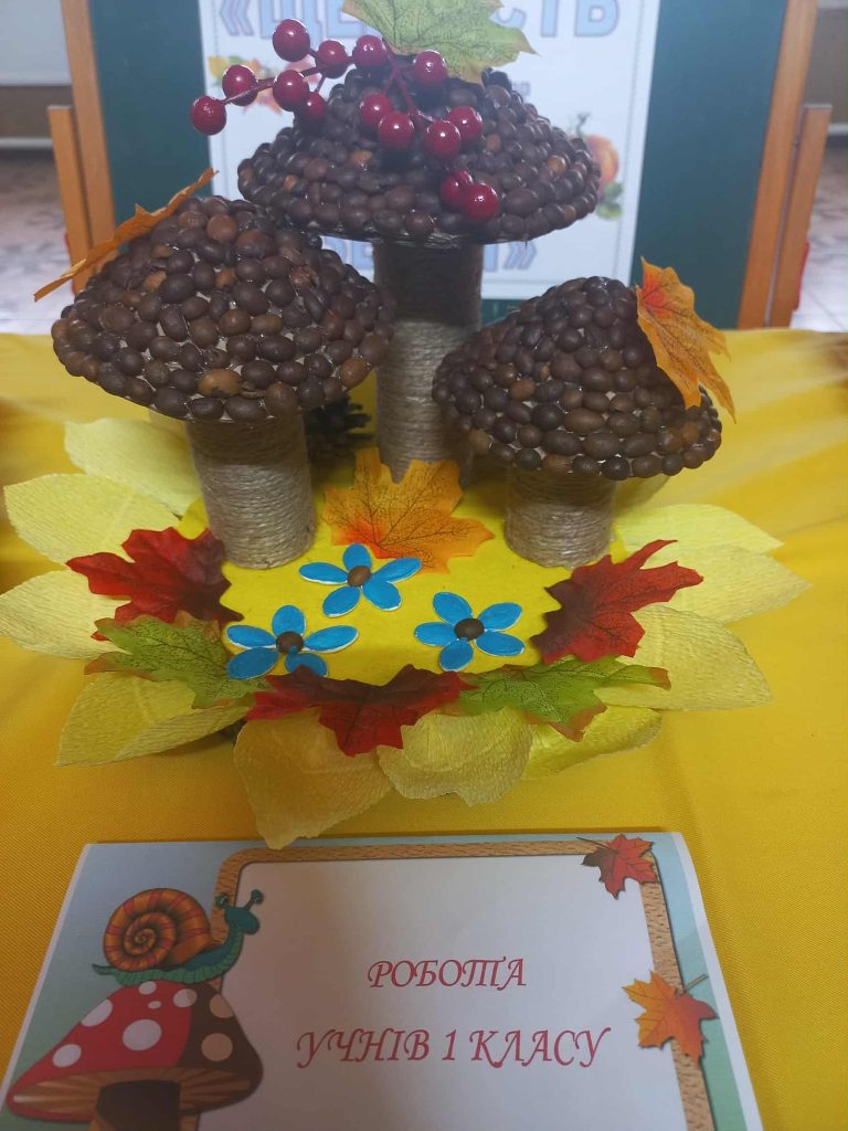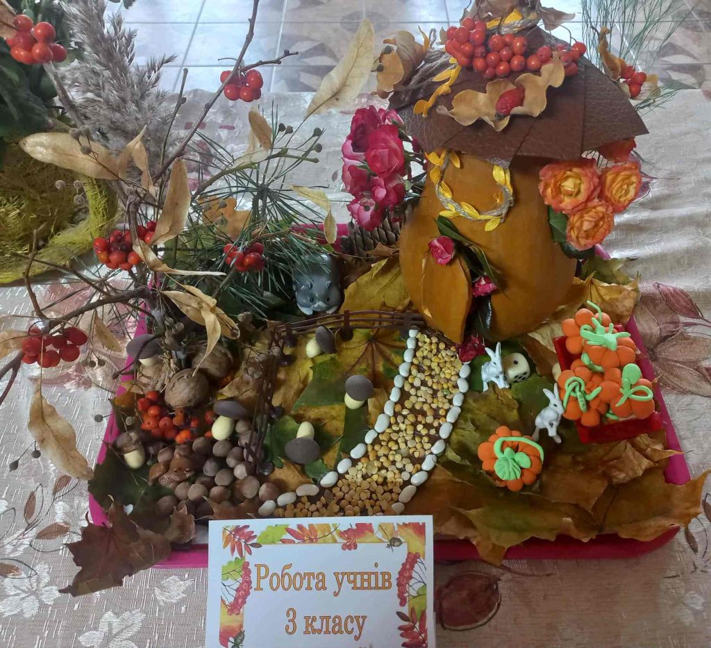 На столах розквітли справжні витвори мистецтва — букети з листя та квітів, вироби з овочів і фруктів, яскраві аплікації та декоративні поробки. 🍃🎨