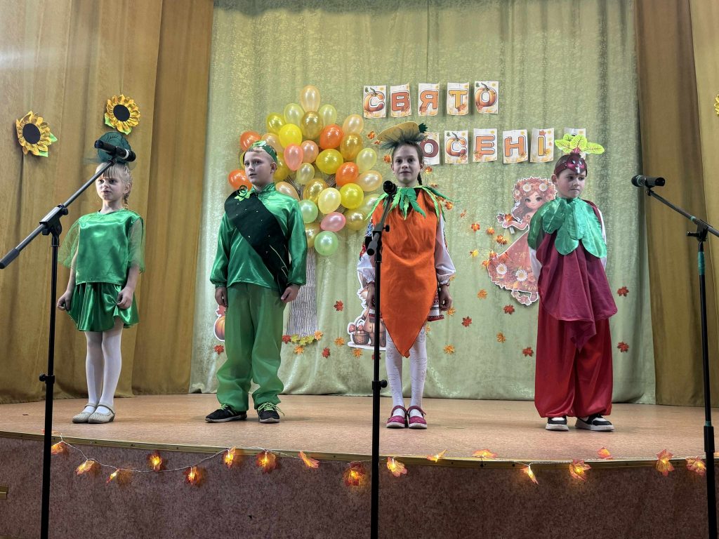 Маленькі артисти разом зі своїми педагогами – Цурик І.А., Вознюк В.М., Дробович К.П. старанно готувалися — вивчали слова, репетирували виступи, прикрашали актову залу та презентували свої осінні костюми. Під час свята дітки перевтілилися у справжніх артистів — різнобарвних овочів, веселих грибочків, грайливих краплинок дощу.