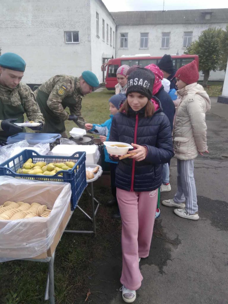 Разом із військовими було проведено спільні тренувальні заходи, під час яких діти змогли більше дізнатися про військову службу, основи безпеки та мужність справжніх героїв, а ще -скуштувати страви справжньої польової кухні. 🫡