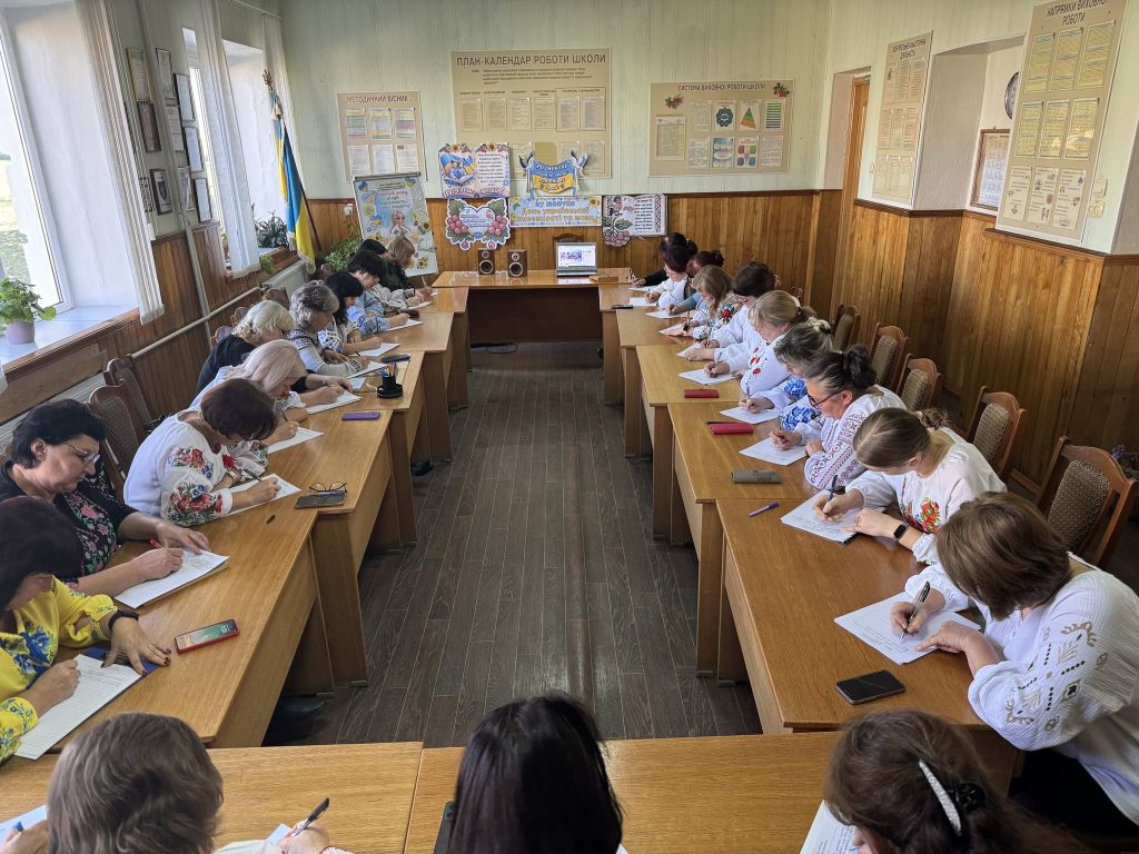 У тиші звучали слова рідної мови — щирі, мелодійні, живі. Кожен учасник із хвилюванням і гордістю писав диктант, вкладаючи в кожну літеру любов до України та повагу до її мови ✍️📖.