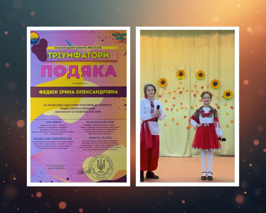 30 жовтня 2025 року учні нашої школи прийняли участь у Міжнародному конкурсі мистецтв «Тріумфатори» (м. Київ).