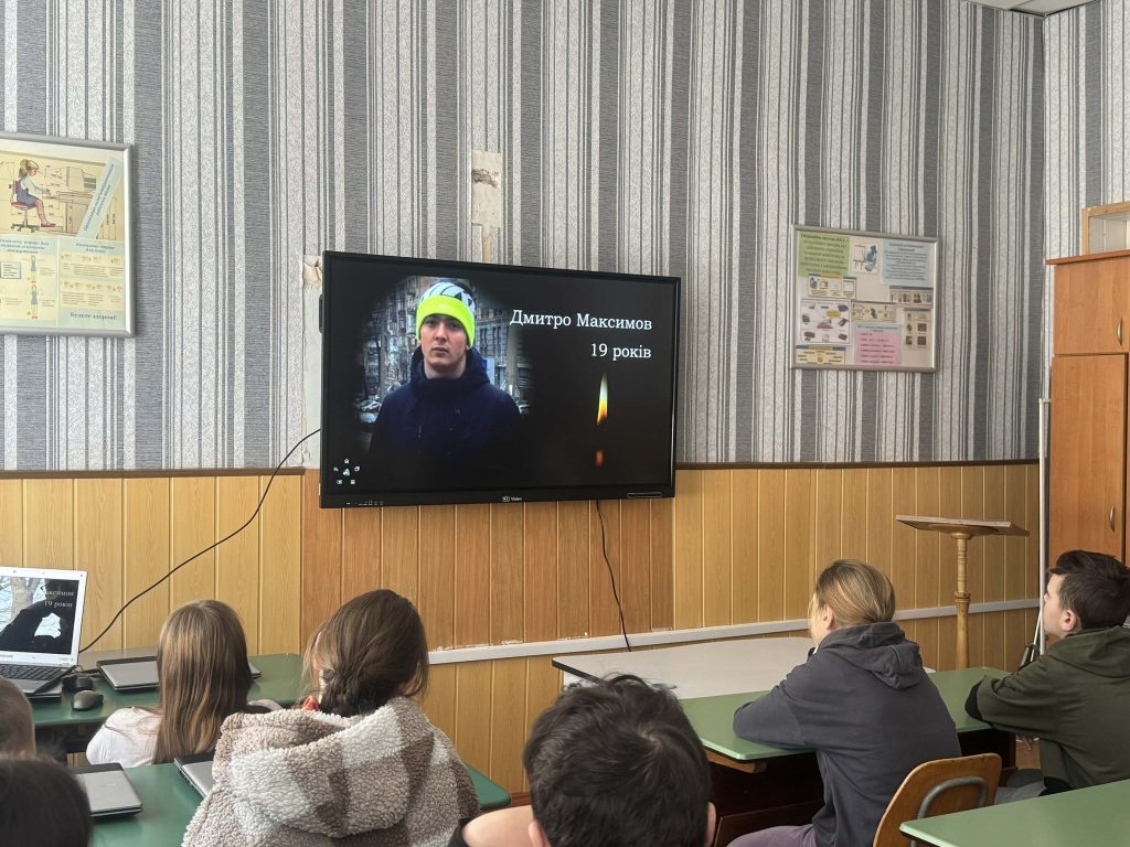 Сьогодні у закладі учителем історії Романом БАНЮКОМ було проведено змістовний та зворушливий урок з учнями 8–10 класів, присвячений Дню Героїв Небесної Сотні.