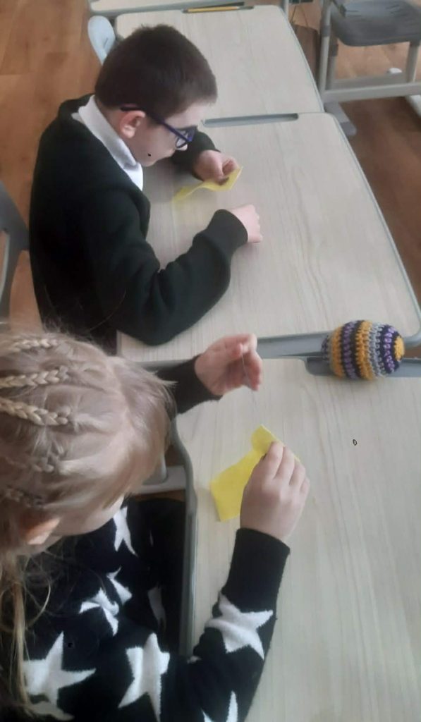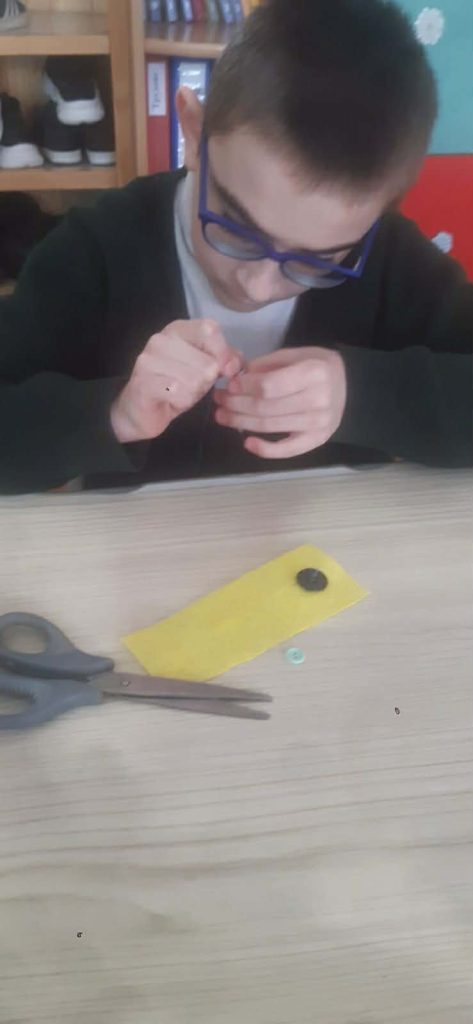 Учні 3 класу під час корекційних занять із соціально-побутового орієнтування опановували важливі життєві навички — вчилися заправляти нитку в голку та пришивати ґудзики.
