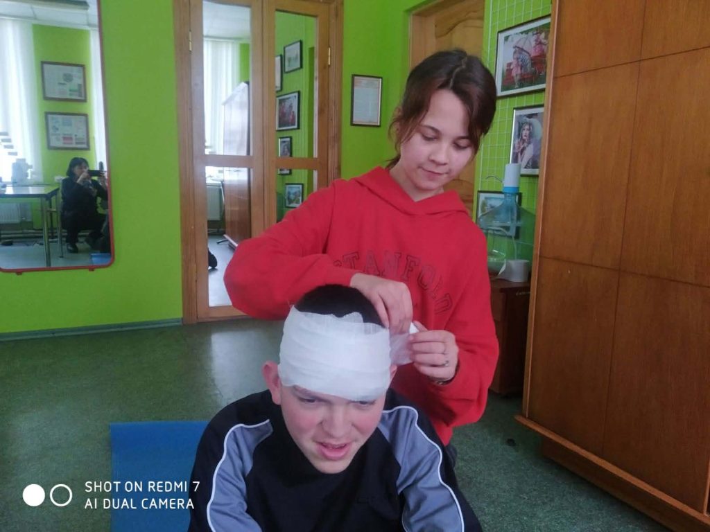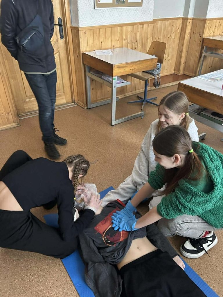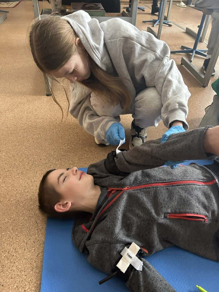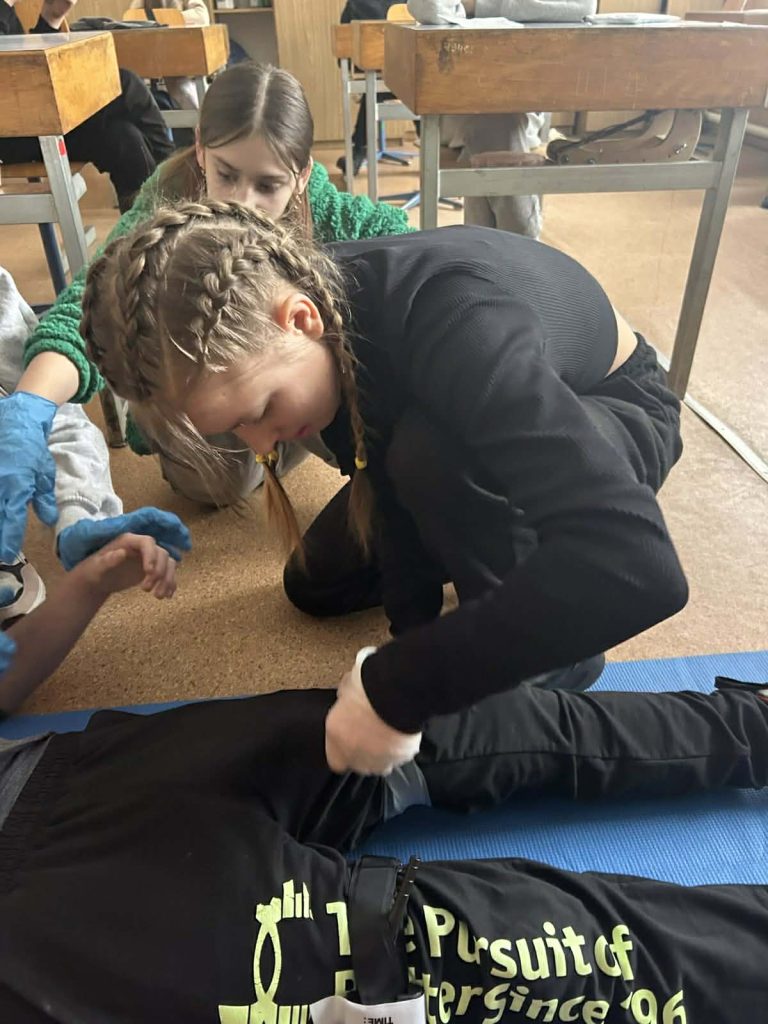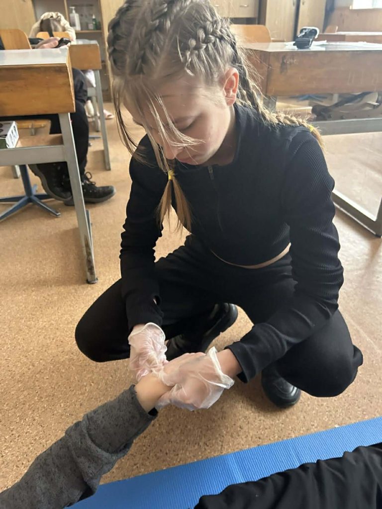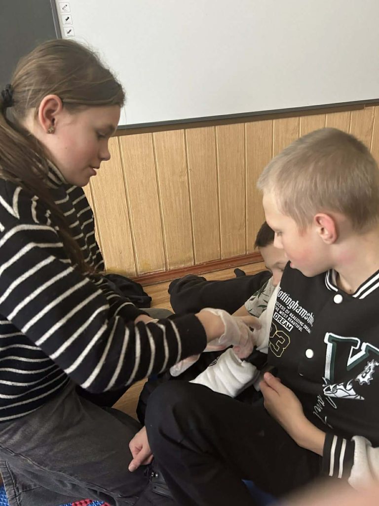 Під час інформаційних бесід класні керівники Ірина НАЗАРЕНКО, Олена БАНЮК та Ольга МИКОЛАЄНКО ознайомили дітей з основними правилами поведінки у надзвичайних ситуаціях, видами загроз та алгоритмом дій у разі їх виникнення. Особливу увагу було приділено засобам індивідуального захисту: учні дізналися про призначення та правила користування захисними масками, респіраторами, найпростішими укриттями. Практична частина заходу була присвячена наданню домедичної допомоги. Школярі 7-9 класів відпрацьовували навички зупинки кровотечі, накладання пов’язок, алгоритм дій при втраті свідомості, а також ознайомилися з основами серцево-легеневої реанімації. Заняття проходили у доступній формі з урахуванням вікових та індивідуальних особливостей дітей. Проведення Дня цивільного захисту сприяло підвищенню рівня обізнаності учнів щодо правил безпечної поведінки, формуванню практичних умінь діяти впевнено та злагоджено в умовах надзвичайних ситуацій.