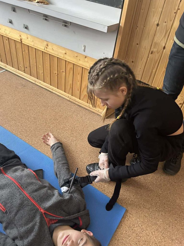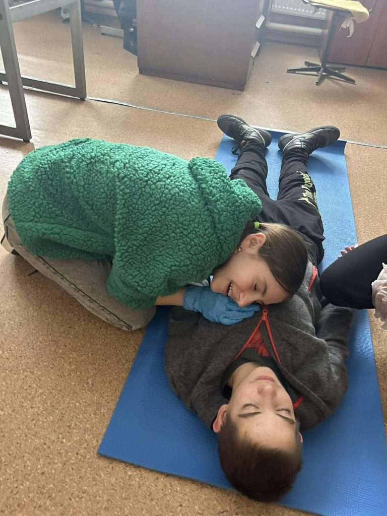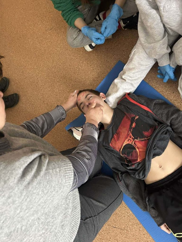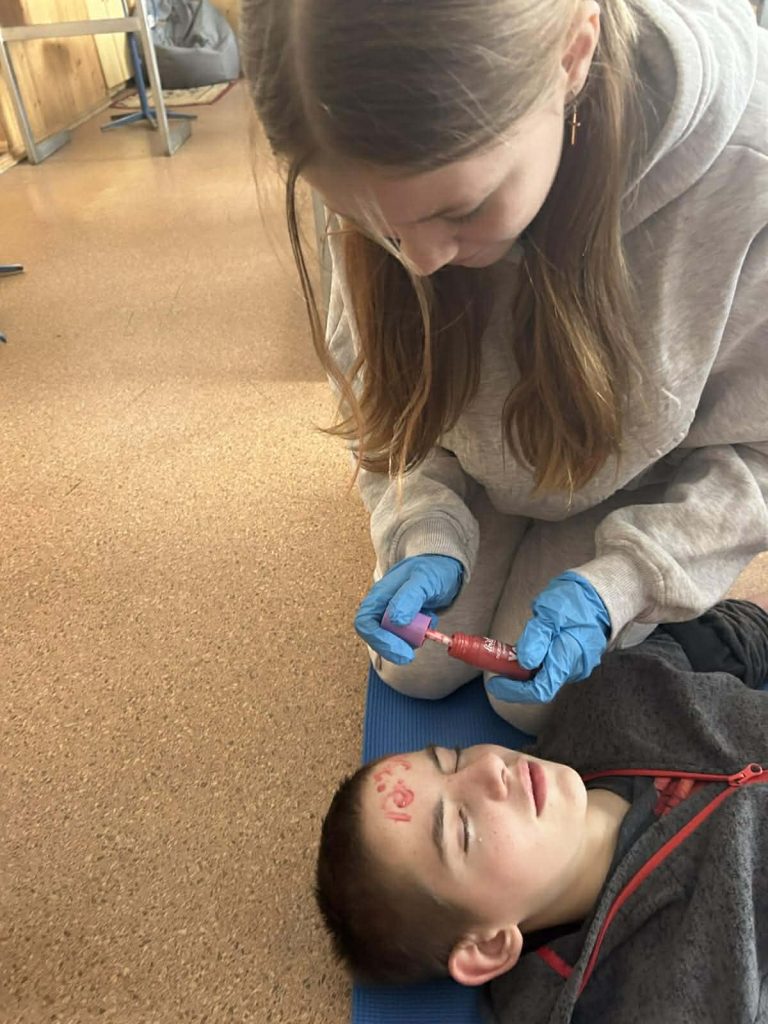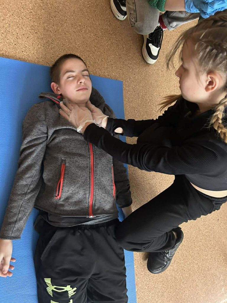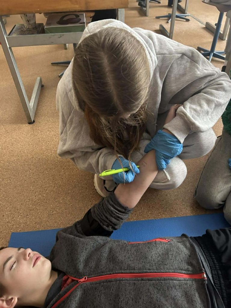 Під час інформаційних бесід класні керівники Ірина НАЗАРЕНКО, Олена БАНЮК та Ольга МИКОЛАЄНКО ознайомили дітей з основними правилами поведінки у надзвичайних ситуаціях, видами загроз та алгоритмом дій у разі їх виникнення. Особливу увагу було приділено засобам індивідуального захисту: учні дізналися про призначення та правила користування захисними масками, респіраторами, найпростішими укриттями. Практична частина заходу була присвячена наданню домедичної допомоги. Школярі 7-9 класів відпрацьовували навички зупинки кровотечі, накладання пов’язок, алгоритм дій при втраті свідомості, а також ознайомилися з основами серцево-легеневої реанімації. Заняття проходили у доступній формі з урахуванням вікових та індивідуальних особливостей дітей. Проведення Дня цивільного захисту сприяло підвищенню рівня обізнаності учнів щодо правил безпечної поведінки, формуванню практичних умінь діяти впевнено та злагоджено в умовах надзвичайних ситуацій.