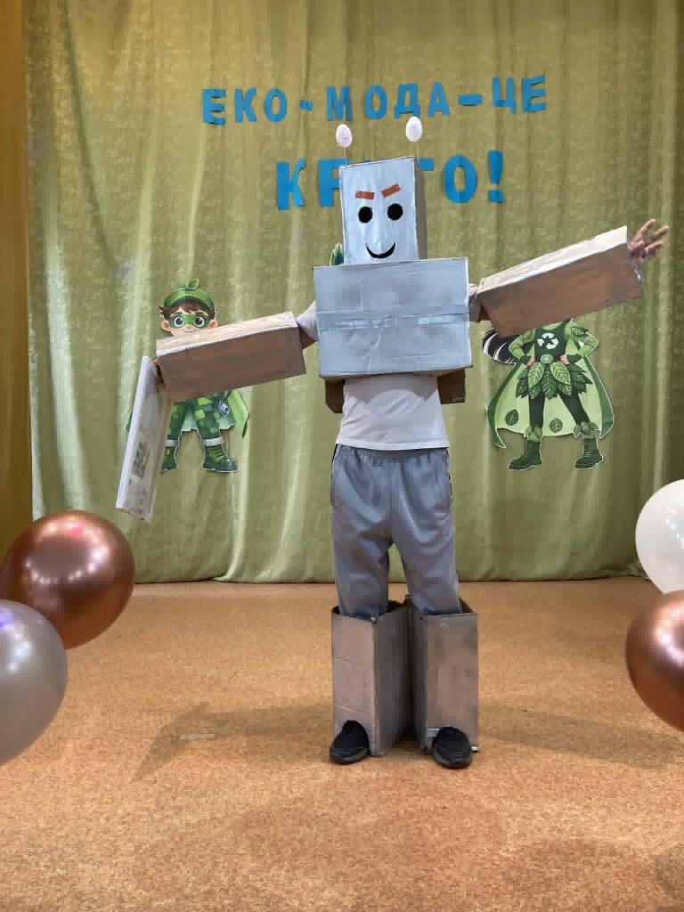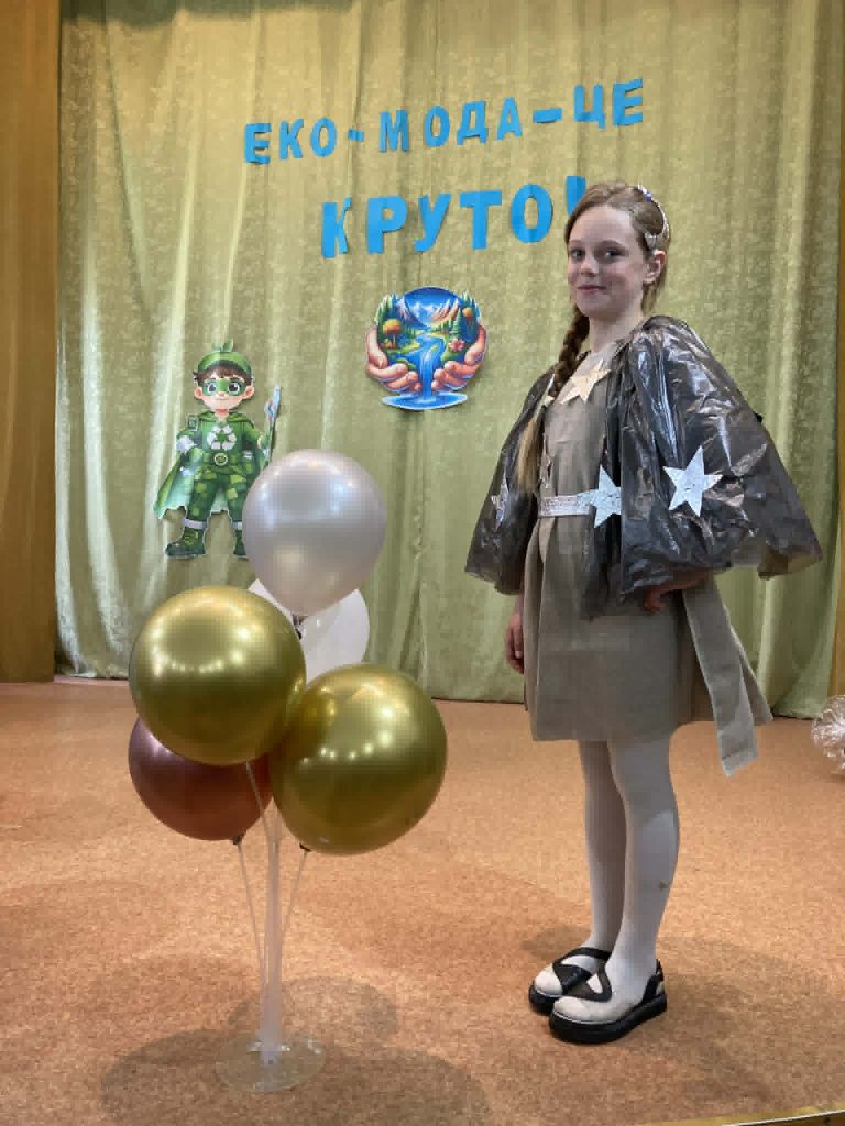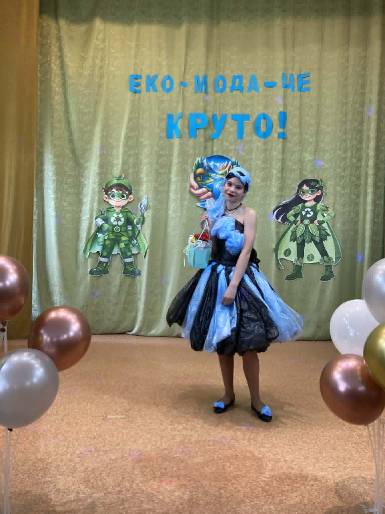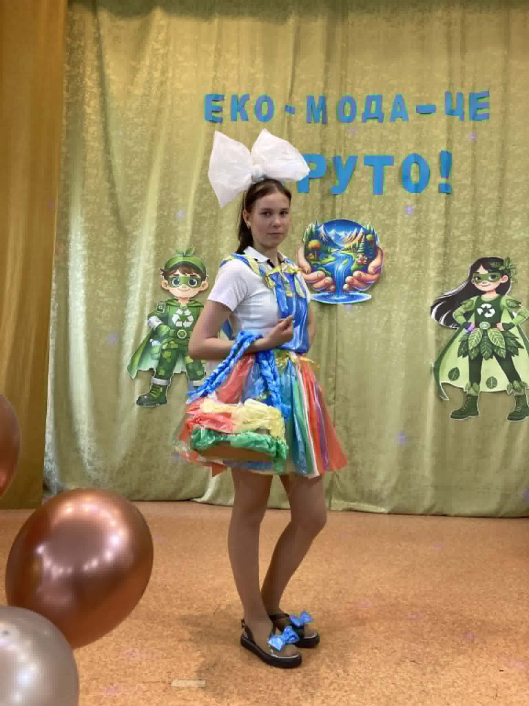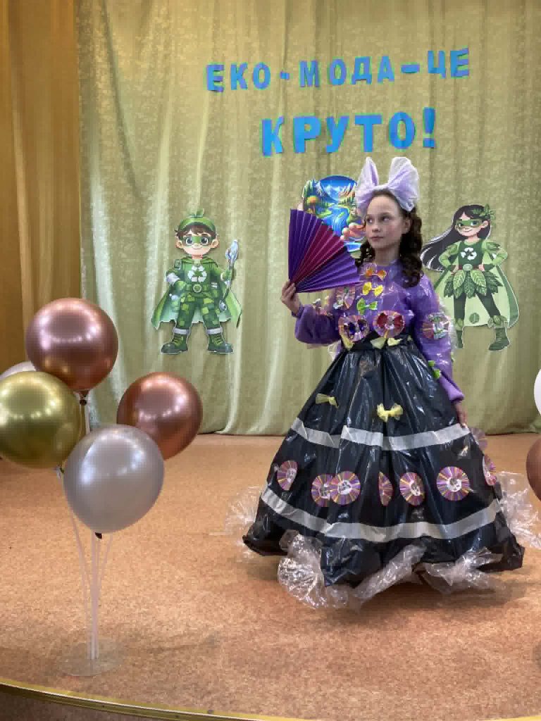 Учні представили неймовірні образи, створені з підручних та вторинних матеріалів: паперу, картону, повітряних кульок, пластику, цукеркових обгорток, тканини, дисків, тощо. На імпровізованому подіумі оживали фантазійні персонажі — від «Повітряного грона», “Весняної родзинки” до «Техно-робота майбутнього». Кожен костюм — це не лише оригінальна ідея, а й важливе нагадування про необхідність дбайливого ставлення до довкілля.
