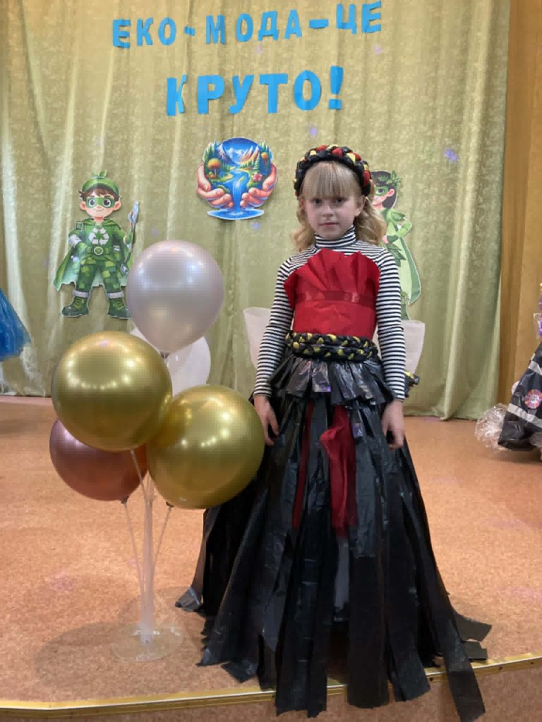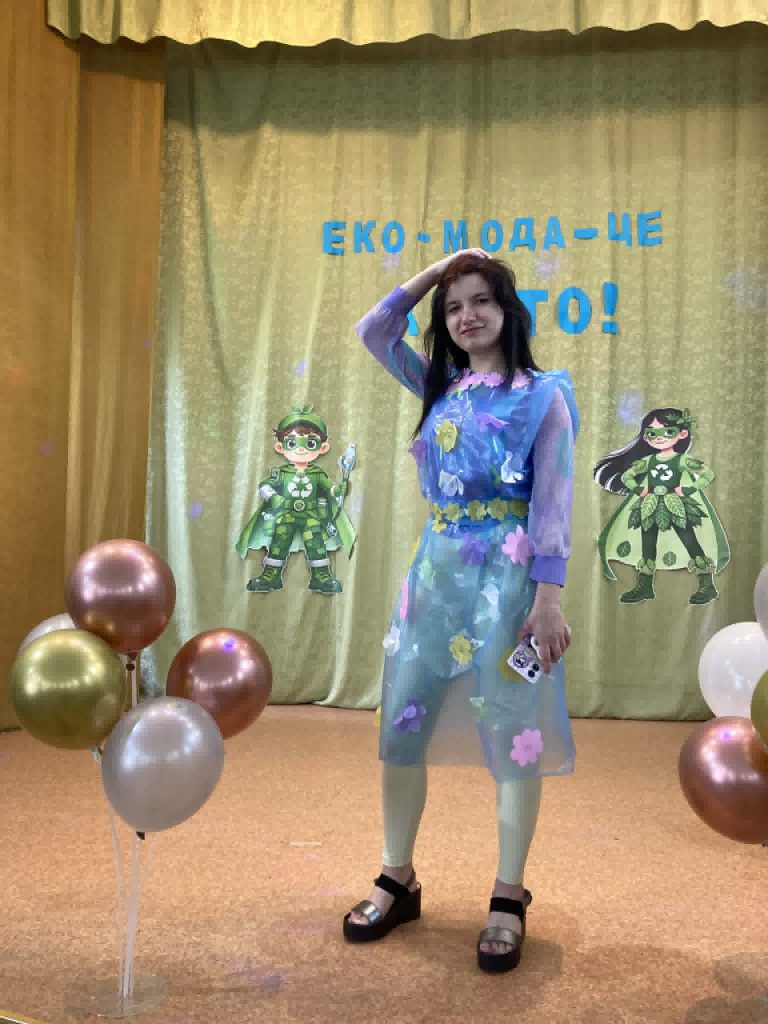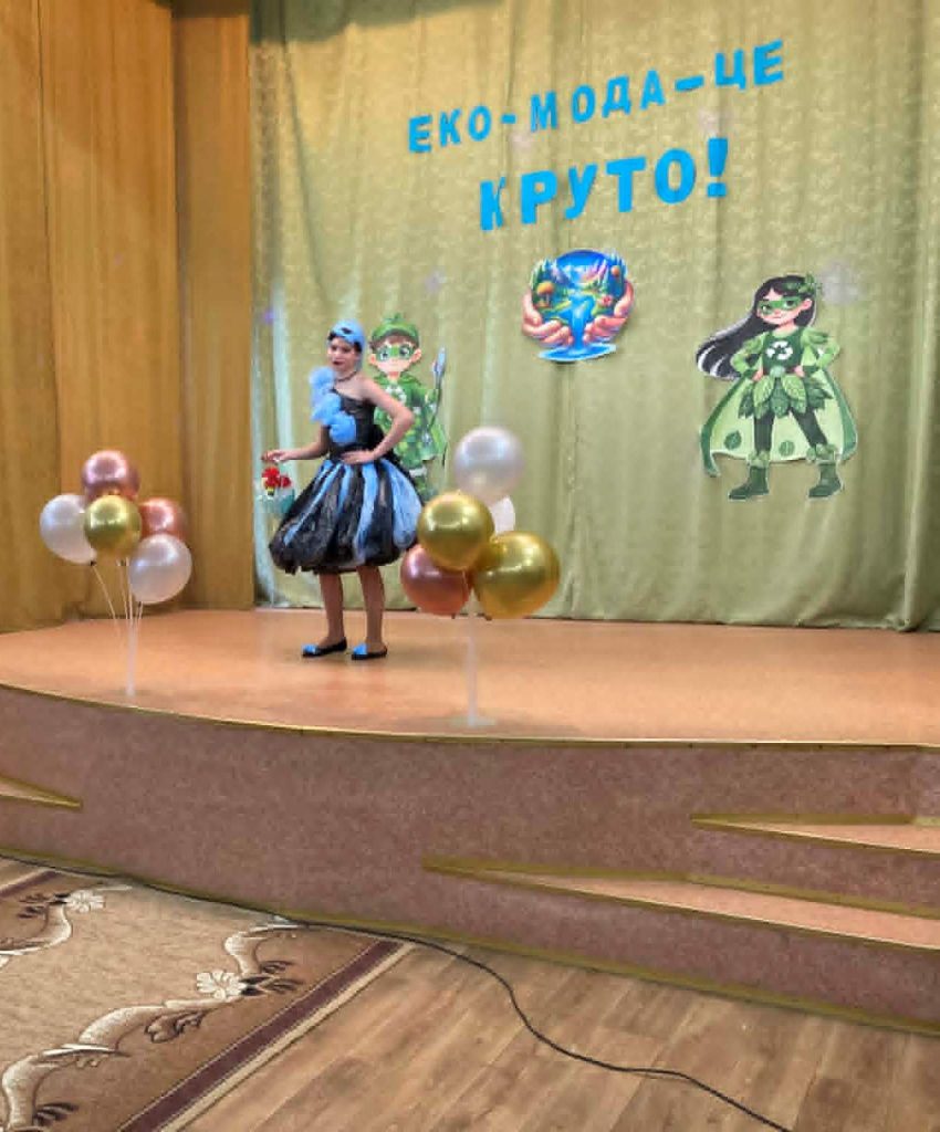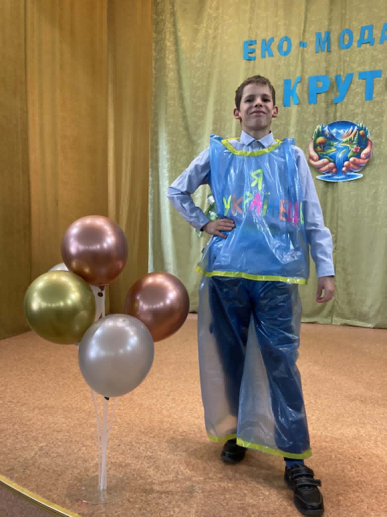 Учні представили неймовірні образи, створені з підручних та вторинних матеріалів: паперу, картону, повітряних кульок, пластику, цукеркових обгорток, тканини, дисків, тощо. На імпровізованому подіумі оживали фантазійні персонажі — від «Повітряного грона», “Весняної родзинки” до «Техно-робота майбутнього». Кожен костюм — це не лише оригінальна ідея, а й важливе нагадування про необхідність дбайливого ставлення до довкілля.