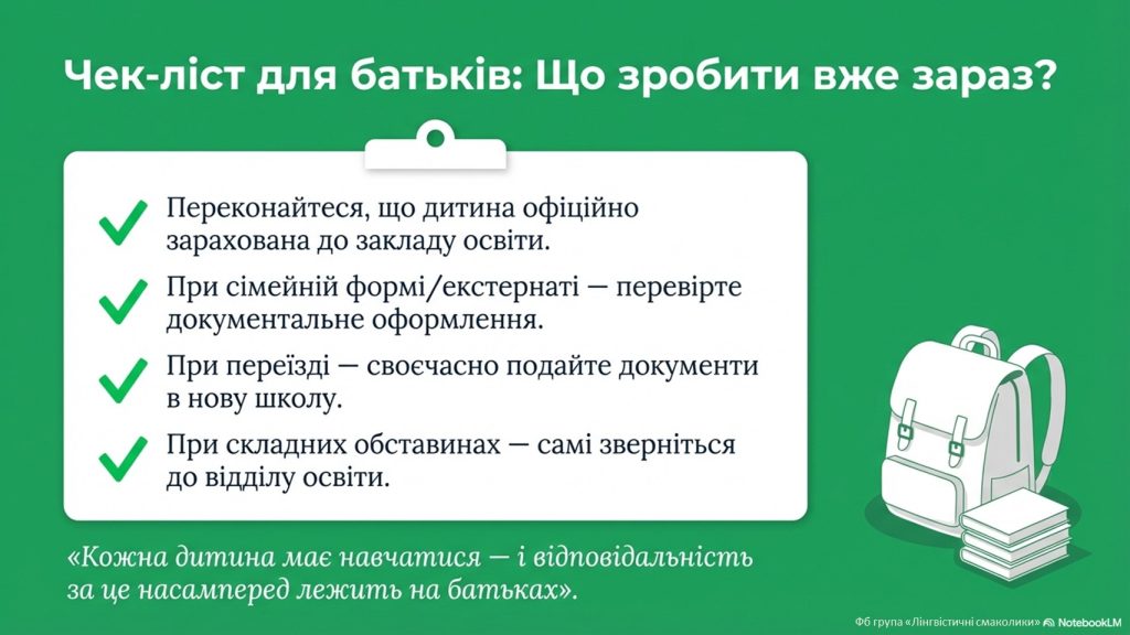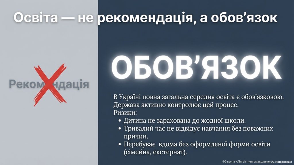 Що це означає для батьків?- 1. Освіта – не рекомендація, а обов’язок. В Україні повна загальна середня освіта є обов’язковою. І держава тепер активніше контролює виконання цього обов’язку.