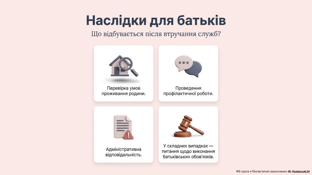 - адміністративну відповідальність батьків;
